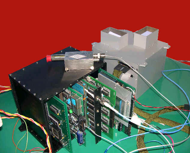 中科院高能所承担的X射线成像谱仪是嫦娥1号卫星的重要有效载荷之一。它是一个宽谱段、高灵敏度、高可靠性的荧光X射线探测系统,ihep-dimianbiaoding.jpg (33250 字节)综合了新型的X射线成像技术、磁场屏蔽技术、数据采集及处理方法等,用于探测月表元素受太阳X射线或宇宙射线激发产生的和天然放射元素辐射的X射线,通过数据处理获得月表主要元素的含量和分布,从而确定月球表面位置类型和资源分布;实现对1-60 keV能区全月面的成象观测,得到X射线月貌图和辐射能谱分布。其中在10-60 keV能段,将是人类首次在环月轨道上对月面的观测,很有可能会有想象不到的新发现。(右图为研制中的样机,左图为地面标定实验)