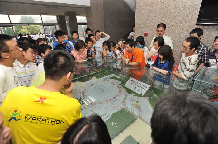 公众前来参观的热情高涨,高能所也提前进行了充分、周到的准备。首先,开幕式和实地参观同时进行,有效分流了集中到达的人群;第二,在报告厅外安排了3个主题的科普展板,并安排专人讲解,保证了公众可以分批次进入空间有限的对撞机隧道;第三,每处参观点和参观点之间的衔接处都配备了志愿者,讲解员兢兢业业、引导员殷勤努力,公众每到一处都能有收获、有秩序。工作人员各司其职,公众也主动配合,整个过程井然有序。