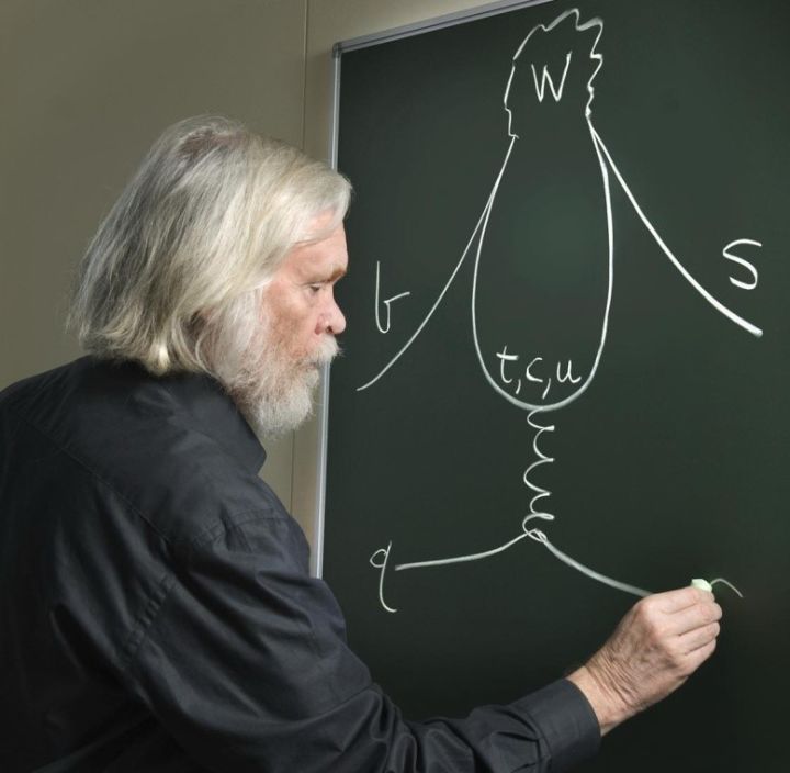 其实真正让企鹅走进物理学的是英国理论物理学家John Ellis。他在和别人打赌输了之后,不得不绞尽脑汁把“企鹅”这个本来与基本粒子毫无关系的动物引入物理学来描述夸克的味道改变中性流过程。在维基百科的“Penguin diagram”词条中,有John Ellis本人对这段往事的详细记叙,这里我们只是简略地描述一下故事梗概,补充一些与科学问题本身有关的史实以及“企鹅图”的后续故事。