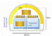 法国Modane地下实验室位于法国东部罗纳 — 阿尔卑斯大区(La région Rhône-Alpes)萨瓦省(La Savoie)的边境小镇Modane地下,简称LSM(Le Laboratoire Souterrain de Modane)。LSM深藏于阿尔卑斯山脉弗雷瑞斯山峰(Le Mont Fréjus)下1700m的岩石中,处于连接法国萨瓦省和意大利西北的皮埃蒙特(Piémont)大区的弗雷瑞斯交通公路隧道(Le Tunnel Routier de Fréjus)的正中央,离入口处约6.5公里。LSM地下实验室面积400m2,空间容积约3500m3。