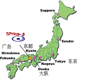 日本大型同步辐射设施SPring-8位于日本列岛中央兵库县的播磨科学花园城(Harima Science Garden City, Hyogo),是世界上能量最高的第三代同步辐射光源。它的英文名称SPring-8(Super Photon ring-8),意为“8GeV的超级光子环”,即输出功率8千兆电子伏。