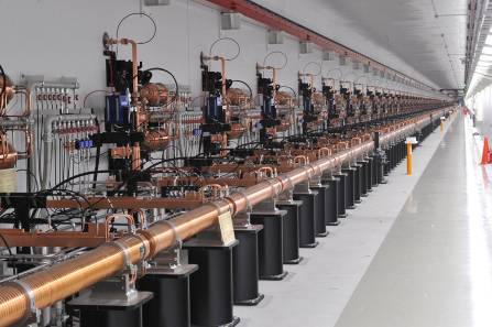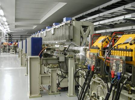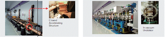 C波段直线加速器是SPring-8和KEK开发的。C波段的加速梯度(35MeV/m)使加速器的长度大大缩短。总长原为1282米亚微米精度的加速器构造,最终安装在长为400米的隧道中。