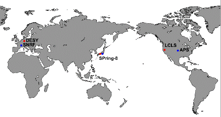 SPring-8早已着手了XFEL的预制和研究工作,加速器样机也成功产生第一束激光束。2006年,XFEL项目工程开工。目前,700米长8GeV的X射线自由电子激光装置正在最后的建设中,预计将于2011财政年度投入运行。在