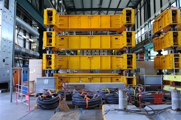 乘坐一分钟的电梯,我们下到了电梯-1层,即地下90米的平台区,在这里正好可以观看ATLAS探测器。-2层可以到达地下100米的设备安装层。
