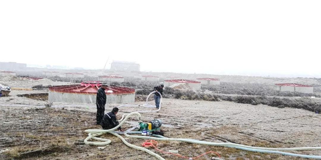 ↓↓↓ 入冬后的工程现场经常被冰雪覆盖,但池内的工艺安装仍在紧张进行