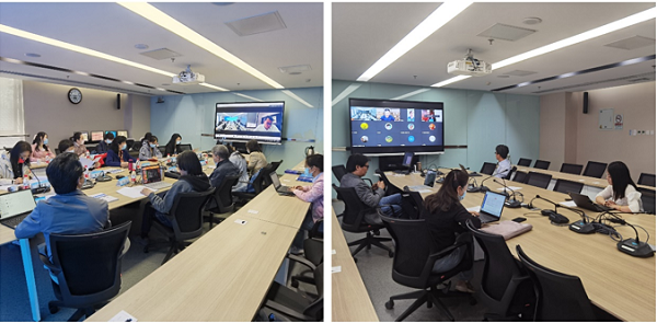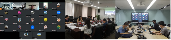 验收会采用在中科院成都分院现场(中)、高能所现场(右)和线上视频会议(左)结合的方式召开。