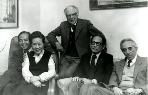 图5 李政道(左1)、塞格雷(E.Segre,1959年诺贝尔物理学奖获得者,左3)、瑟伯(R.Serber,右2)和威克(G.C.Wick,右1),在吴健雄(左2)家聚会(20世纪70年代中期)