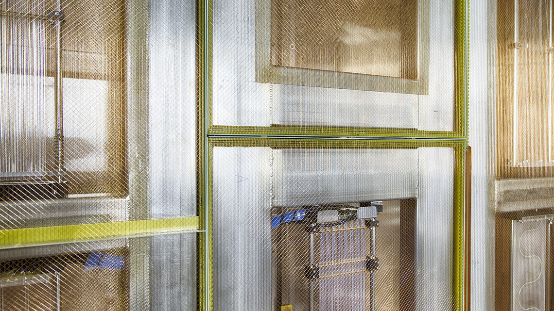 DUNE scientists are also paying special attention to the prototype’s wire planes, pieces that hold the thin wires strung across the detector to pick up electrons. To ensure the frames will fit down the narrow mine shaft and avoid having to stretch the wires across the long DUNE detectors, risking sagging, scientists plan to use a series of small frames. These wire planes should measure tracks in the liquid argon both in front of and behind them, unlike other detectors.