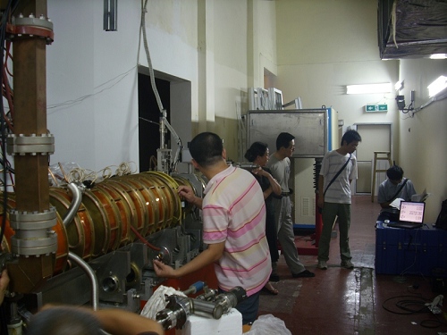 2009年7月30日BEPCII进入暑期检修阶段,直线分总体放弃了高温假,立即投入到子谐波聚束器系统的安装工作中。在通用运行室和其他兄弟部门大力支持下,经过一个多月的艰苦努力,解决了各种各样的技术问题,终于在9月上旬完成安装任务。又经过一周多的系统老炼和调试,直线注入器于9月20日正式开机运行。27日,期望已久的单束团电子束通过直线加速器到达分析靶站,标志着直线加速器子谐波聚束器系统安装调试完全成功,提前完成了暑期安装和检修计划。