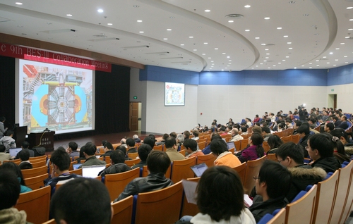 11月6日-11月10日,BESIII国际合作组第九次会议在南开大学召开。美国、德国、意大利、俄罗斯、韩国、中国香港以及高能所、南开大学、清华大学、北京大学、中国科学技术大学、中国高等科学技术中心、南京大学等27所国内外研究单位和重点大学的代表参加了会议。大会由BESIII合作组发言人、高能所常务副所长王贻芳主持,南开大学物理科学学院院长王慧田致开幕词,叶铭汉院士等近200位代表出席了开幕式。