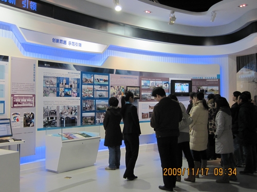 大家在讲解员的引领下,跟随历史的脚步,依次参观了序厅、奠基开拓发展、改革创新引领、中国科学院教育事业、中国科学院学部与院士、迎接新挑战再创新辉煌等六个展区。展览上,一幅幅弥足珍贵的历史图片,一项项振奋人心的科技成果,一条条求新务实的政策法规,充分体现了党和国家领导人对中国科学院的亲切关怀,系统梳理了历任院领导的基本情况、建院早期主要学科奠基人、两弹一星元勋等科学院成立六十年的重大事件和成果,重点展示了1949-1980年中科院的成立、新中国科技事业的奠基和迎接科学的春天等重大事件和成果,1981-2009年中国科学院改革探索实践发展及重大成果,六十年来科学院积极探索科教结合培育创新人才的机制和模式,中国科学院学部成立和发展历程,中国科学院开展的中国至2050年重要领域科技发展路线图战略研究情况等内容。