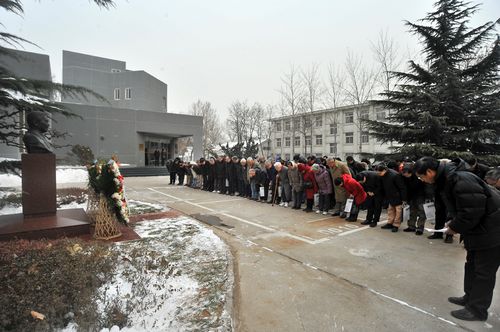 会后,参会人员前往张文裕先生雕像处敬献花篮以示纪念。