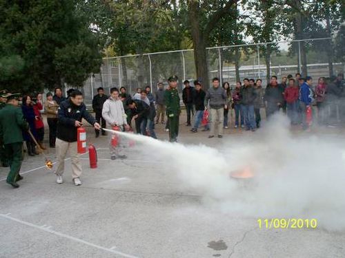 培训报告结束后,新成员们又兴致勃勃地来到了操场,参加了技术安全处组织的消防演练。在现场听取了消防队员讲解如何正确使用消防器材,观摩了消防战士如何操作特殊消防器材,并实际操练了常用的灭火器。演练结束后,新员工们还向消防队员咨询了感兴趣的消防知识。