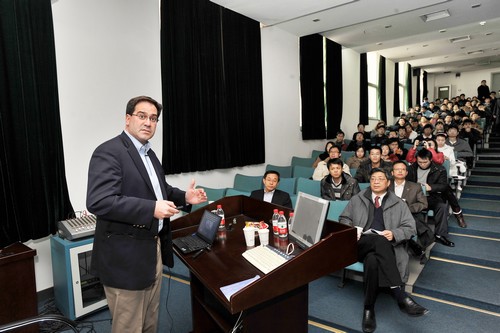 Chad A. Mirkin教授是美国科学院、医学院、工程院三院院士,美国总统奥巴马的科技顾问,现任美国西北大学化学系、医学系以及材料工程系教授,兼任纳米技术国际研究所所长,纳米科学杂志Small的主编。其研究工作集中在纳米生物与纳米化学领域,曾获多项国际重要奖项。作为中科院爱因斯坦讲座教授,Mirkin教授本次来京分别对中科院高能所、化学所以及北京大学进行了学术访问。
