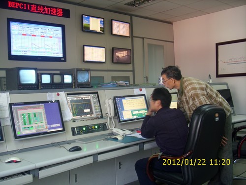 当全国人民在吃家庭团聚饭、收看春节联欢晚会的时候,BEPCII值兔年最后一个白班的同志正在给龙年第一个夜班的同志交接工作。当子夜的鞭炮声响起之时,直线加速器输出的正电子,正在以平均每分钟50~60毫安的注入速率向储存环注入。设备维护人员更是冒着零下12度的严寒,穿梭巡检于各个重要设备之间。在此起彼伏的鞭炮声中,在家中值硬件设备抢修待传班的同志,给控制室值班打来节日祝贺电话,也不忘关心加速器设备的运行状态。
