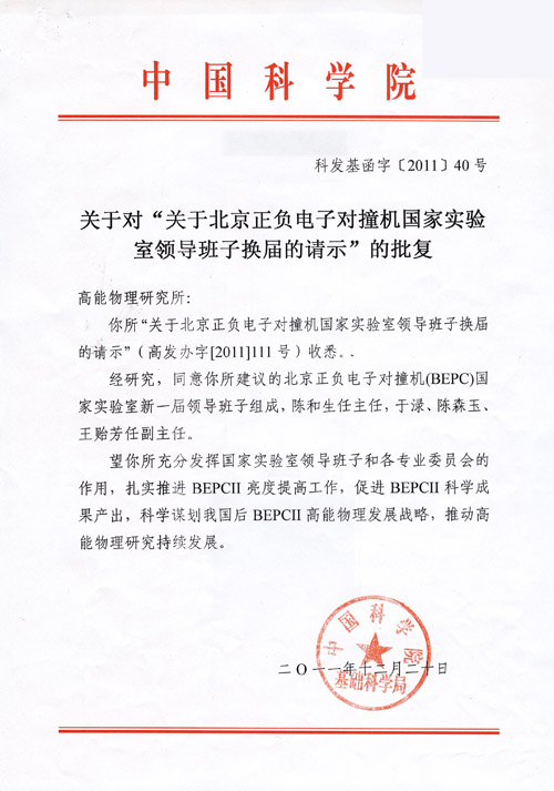 近日,高能所接到中科院基础局批复,北京正负电子对撞机(BEPC)国家实验室新一届领导班子成立。