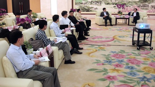 散裂中子源工程经理陈和生首先汇报了项目的进展情况,包括散裂中子源的工程概况、工程进展、预制研究、工程管理和经费情况。他表示,散裂中子源对于促进我国中子散射技术的发展和多学科的应用、优化大科学装置的布局、促进珠三角地区产业转型和科技发展具有重要意义,散裂中子源会进一步加强与广东省在相关领域的产业化合作。