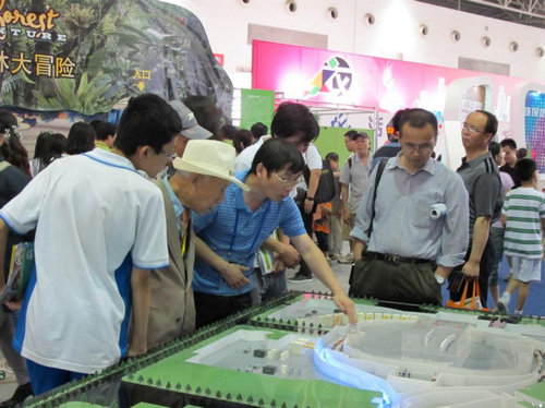 高能所参展的展品有北京正负电子对撞机模型、北京谱仪模型和互动机器人。对撞机模型以声、光形式演示了其工作原理,北京谱仪模型不仅演示了工作原理,还配有以小机器人为解说员的动画,互动机器人则以有奖问答的方式与公众互动,成为闯关游戏之一。另外,高能所还为公众准备了谢家麟院士获2011国家最高科技奖宣传彩页、大亚湾中微子实验宣传彩页等。