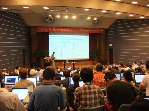按照惯例会议分两个阶段进行。前四天为第一阶段,由来自软件数据分析、自动刻度系统、手动刻度系统、Muon探测器、中心探测器、电子学、现场运行维护等方面的研究小组汇报近期工作进展及存在的问题,并就如何解决现存问题进行深入讨论。后两天为第二阶段,合作组负责人和各系统负责人对会议讨论结果进行总结,并安排下一步的工作计划。本次会议重点讨论制定了大亚湾中微子实验站夏季停机检修安排和最后两个探测器的安装计划。迄今为止,大亚湾实验第一阶段六个探测器已经稳定运行了11个月,按照计划,检修和安装工作将从7月28号开始,在9月29号之前完成,为期两个月。届时,大亚湾实验站的全部八个探测器将以全新的状态重新投入到取数运行中去,确保在国际中微子物理研究方面的领先地位。