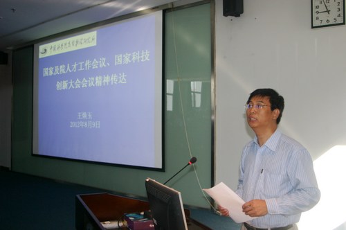 所党委书记王焕玉做了国家及科学院人才工作会议精神传达的报告。他解读了全国人才工作会议、中科院人才工作座谈会及国家科技创新大会会议精神,提出了在研究所内落实会议精神的考虑。王焕玉希望与会人员认真领会会议要义,贯彻执行会议部署,积极探索我所人才队伍建设及管理的新思路。
