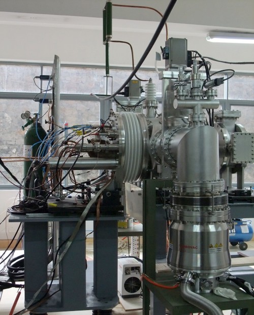 为赢得中国散裂中子源工程建设的时间进度,在散裂中子源基地实验室交付使用前,借助高能物理所与东莞理工学院的合作渠道,散裂中子源加速器前端课题组及相关课题组在东莞理工学院提供的临时实验室开展了负氢离子源和低能传输段的先期搭建和调试工作。在工程经理部领导下和东莞理工学院的大力支持下,经过课题组成员的艰苦奋战,现已完成负氢离子源和低能传输线的搭建工作和初步的调试运行,取得了阶段性成果。在低能传输线入口处得到的最大负氢束流约为38 mA,稳定性负氢束流为20.7 mA。进一步提高离子源负氢束流强度及稳定性的调试工作也正在加紧进行。