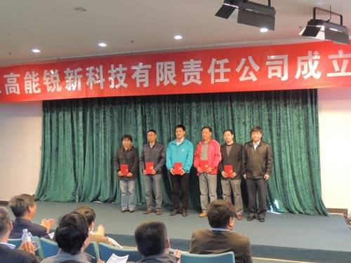 王贻芳、王焕玉、赵京伟以及戴旭文一起为公司成立揭牌。揭牌仪式后,戴旭文回顾了工厂的历史以及对新公司未来的展望,员工代表表达了对于公司成立的激动之情以及对以后工作的决心。赵京伟对公司的成立表示祝贺并提出几点希望。
