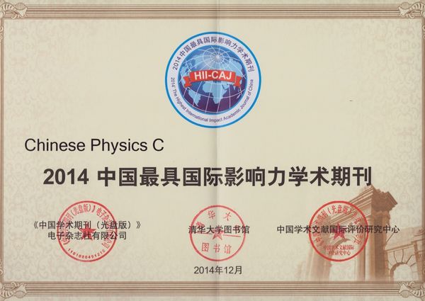 Chinese Physics C入选“2014中国最具国际影响力学术期刊”