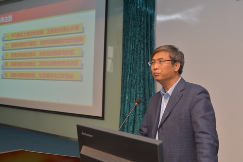 首先,党委书记王焕玉作了题为《贯彻落实群众路线 深入推进党建工作 为实现“四个率先”目标保驾护航》的党委工作报告。报告从贯彻群众路线、强化组织建设、紧抓党风廉政建设、开展创新文化建设、引导工、青、妇、离退休和统战各方力量共建研究所等六个方面,详细阐述了所党委过去一年的工作和所取得的成绩。王焕玉指出,2014年,所党委的工作重点是:进一步改进工作作风,巩固教育实践活动成果;继续学习、贯彻党的十八届三中全会精神和习近平总书记“四个率先”讲话精神;强化组织建设和惩防体系建设;推进异地工程党群组织建设;继续凝练核心价值体系,以创新文化推动创新实践;加强对群团、统战等工作的领导,凝聚全所力量服务“创新2020”。