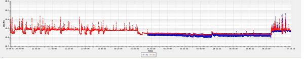 为保证RFQ腔体按时顺利加电老炼,ADS项目全体成员夜以继日,连续奋战。RFQ相关系统一大批人员主动放弃五一假期,早八点到晚八点工作,于13天内完成RFQ水冷管道铜管376根的连接,控制系统温度探头、流量开关、流量计2034根控制线连线。准直系统成员工作至凌晨三点,于当天完成RFQ腔体的准直工作。RFQ、耦合器、功率源、电源等系统也积极抽调组员,组成了20人的RFQ老炼值班小组,分白班、夜班进行24小时的RFQ老炼调试,自五月十四日开始了第一次加电老炼。