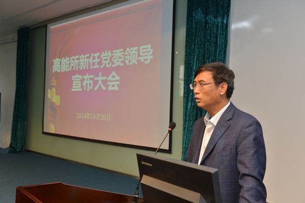 王贻芳所长代表所行政班子发表讲话。他指出,在我院积极推行“率先行动计划”的形势下,高能所面临着巨大的机遇和挑战,新一届党政领导班子责任重大。他表示,在今后的工作中,所行政与党委班子会密切合作,党政一心,与全所职工一起共同努力,将所里的工作做好,不辜负院领导、院党组的期望。同时,他也对原党委书记王焕玉、原所长陈和生的工作表示感谢,认为高能所现在的良好局面与他们打下的良好基础是密不可分的。