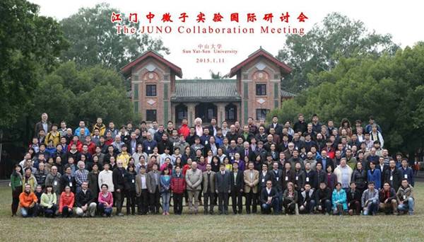 1月11日至14日,江门中微子实验国际合作组会在广州中山大学召开,来自中国(包括台湾)、亚美尼亚、比利时、巴西、智利、捷克、法国、德国、意大利、俄罗斯、美国等国家的200多名专家学者出席了此次会议。国内有中科院高能所、清华大学、上海交通大学、中山大学、山东大学、中国科学院大学、中国原子能科学研究院、南京大学等20多个科研院所和海南展创、北方夜视等企事业单位参加了此次会议。会议之前,合作组成员共赴广东省开平市金鸡镇——江门中微子实验现场,参加了实验项目建设启动会,共同见证了实验项目建设的启动。