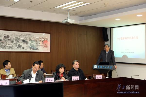 之后,华南理工大学科学技术处处长马卫华介绍了华南理工大学的情况,陈和生院士和程贺研究员分别对散裂中子源整体的情况和中子谱仪在材料研究方面的应用情况做了详细的报告。