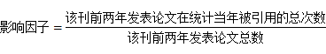 期刊影响因子:这是一个国际上通行的期刊评价指标,是一个相对统计量。通常,期刊影响因子越大,它的学术影响力和作用也越大。具体算法为: