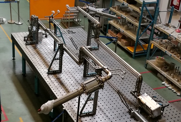 慢化器为散裂源靶站的核心设备,其功能为将质子打靶产能的高能中子慢化为供谱仪使用的低能冷中子。CSNS有3个不同类型的慢化器,其结构复杂,性能指标要求高,本体部分为铝制四层嵌套式异型变壁厚薄壁焊接容器,管道部分为三层嵌套式不锈钢焊接管道,工作介质为20K低温超临界氢,工作压力1.7MPa,真空度优于10-3Pa,漏率小于6.7×10-9Pa.m3/s,20余条焊缝的慢化器本体容器整体焊接变形小于1‰,150余条焊缝的低温输送管整体位置度误差小于2‰。