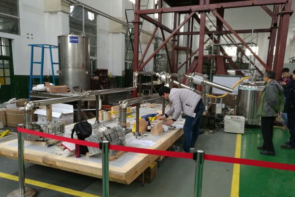 12月10日,慢化器运抵安徽合肥,由高能所、中国工程物理研究院材料研究所、合肥聚能电物理高技术开发有限公司的相关人员联合对慢化器进行开箱后各项性能指标复测,经过一周时间的紧张测试,于12月17日完成了包括气压试验、常温氦质谱检漏、真空度测试、低温绝热性能测试、多次冷热冲击后的氦质谱检漏等共20余项性能指标的复测,各项复测技术指标完全符合设计要求。