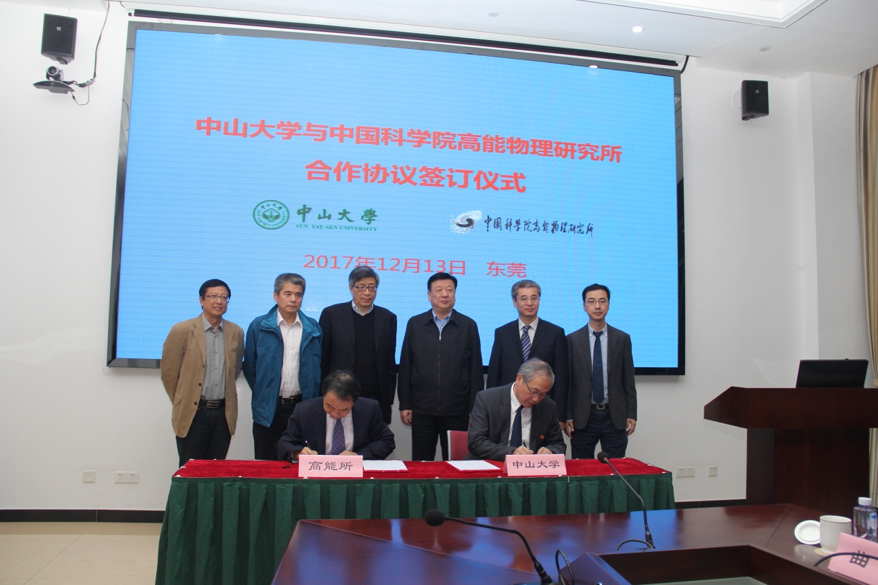 12月13日,快盈v3与中山大学在东莞分部签署战略合作协议,双方拟在散裂中子源谱仪共建、人才培养、信息交流、发展规划、科学技术研究和科技成果转化等领域开展全面长期合作。高能所所长王贻芳和中山大学校长罗俊代表双方在合作协议上签字。散裂中子源工程总指挥陈和生,高能所党委书记潘卫民、副所长陈延伟,中山大学常务副校长孙冬柏、校长助理邰忠智、物理学院院长郑跃见证签约。