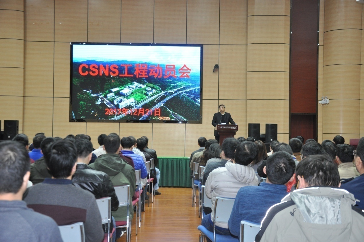 散裂中子源工程总指挥、工程总经理陈和生院士首先做工程动员报告。他充分肯定了散裂中子源项目取得的突出成绩,8月28日,散裂中子源首次打靶成功,获得中子束流,这是工程建设的重大里程碑,提前实现了今年秋天首次获得中子束流的目标。在近期召开的散裂中子源工程科学技术委员会第四次会议与国际顾问委员会第九次会议中,CSNS取得的成果也得到了与会专家的高度评价。陈和生指出,工程取得的进展是全体参建人员共同奋斗的结果,尤其离不开年轻建设者们的努力。在散裂中子源的建设过程中,年轻同志挑起了工程任务的大梁,实现了工程建设一个又一个巨大的飞跃。下一阶段的建设任务依然严峻和艰巨,但恰恰是年轻同志在大科学装置建设中实现自我价值,为今后科学技术发展道路奠定基础的黄金时期。CSNS作为用户装置,要求实现稳定、可靠、高效的运行,达成这一目标还需要继续进行第二阶段的联合调试,陈和生号召全体参建人员动员起来,春节期间不间断调试工作,力争按计划完成国家验收。