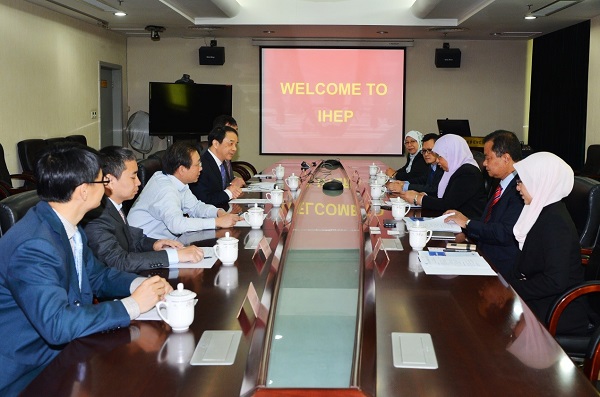 4月11日,马来西亚马来亚大学(University of Malaya)理学院院长扎那里阿·阿卜杜拉(Zanariah Abdullah)教授、物理系主任哈森·阿布·卡斯姆教授(Hasan Abu Kassim)等一行五人访问中科院高能所。高能所所长王贻芳、副所长陈刚、所长助理董宇辉及相关人员参与了会谈。