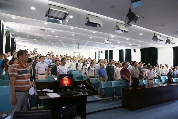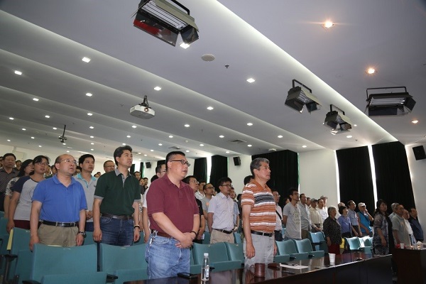 潘卫民主持大会。大会全体人员奏唱《国歌》,随后举手表决通过了《关于高能所党员代表大会代表资格审查的报告》,总监票人、监票人、计票人名单。