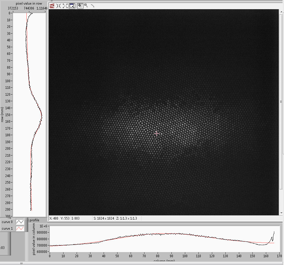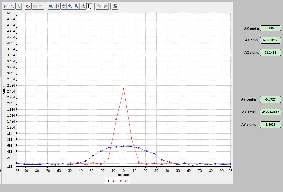 图1. 中子靶前的束流剖面测量装置测量的实时束流剖面,位置和分布均满足中子靶的要求