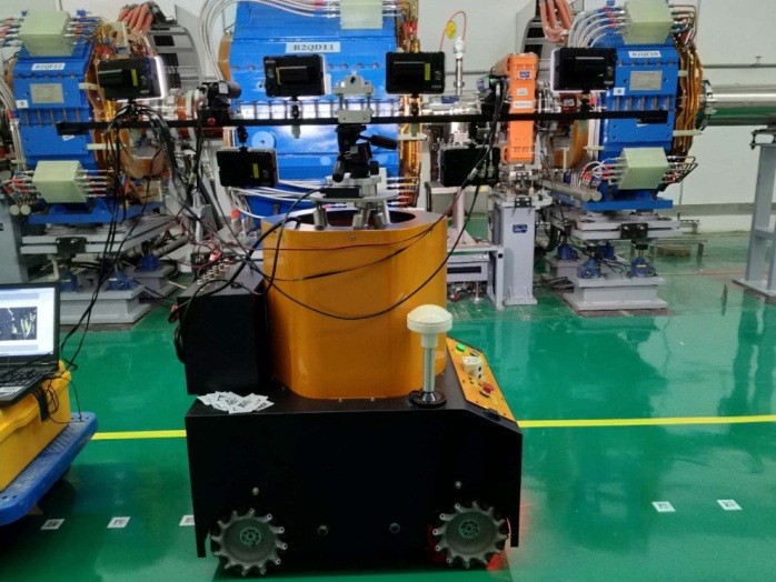 近日,中国散裂中子源(CSNS)自主研制的远程控制机器行走检测车在环隧道成功投入使用,该检测车是为隧道无法进入时自动巡检设计,类似机器人,其搭载的机械臂和相关测量设备可实现自动安装和准直。行走检测车可携带机械手、准直测量仪器、振动测量仪器在隧道内工作。整车最大承载为50kg,内置的高程调节装置能把平台提升500mm。