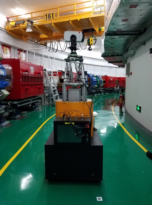 行走检测车搭载准直摄影测量相机,实现磁铁等设备的准直测量。为保证摄影测量相机处于水平位置,行走检测车上安装了六轴平台,平台能自动调节相机的水平位置,水平调节精度达0.001度。