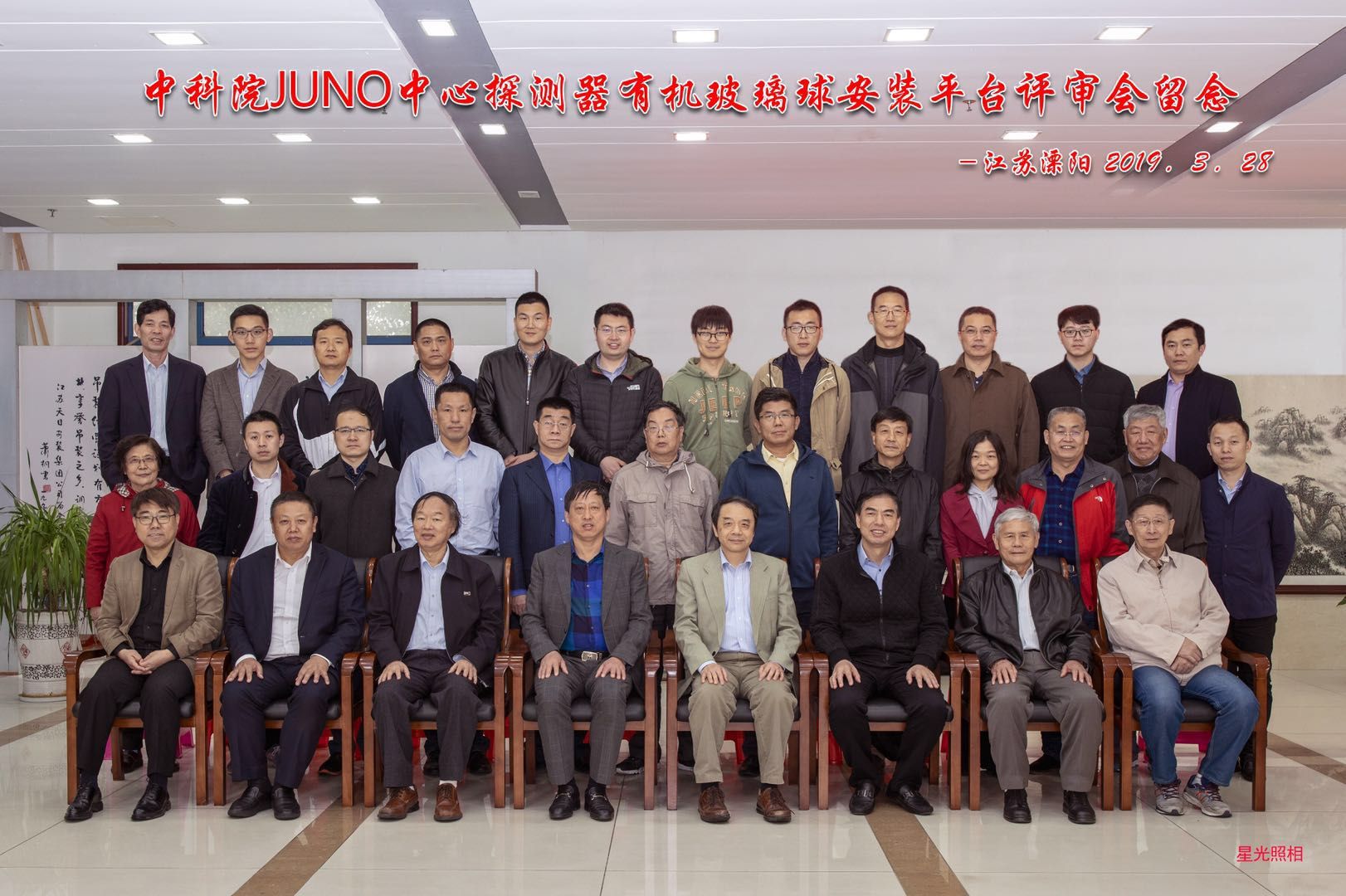 3月28日,江门中微子实验(JUNO)中心探测器有机玻璃球安装平台设计评审会在常州溧阳召开。会议由JUNO合作组主办,江苏天目建设集团有限公司承办。评审组成员包括6名JUNO合作组内专家及9名合作组外的力学、结构、工程等方面的专家,JUNO总质量师李卫国研究员担任评审组组长,高能所所长、JUNO项目负责人王贻芳院士,江苏天目建设集团公司董事长周天喜等出席了会议,总共有来自中科院高能所、北京市建筑工程装饰集团有限公司、北京市建筑设计研究院有限公司、浙江东南网架股份有限公司、中国建筑科学研究院、上海玻乐机械五金制造有限公司、汤臣压克力有限公司的评审专家以及项目监理组成员、平台承制方江苏天目建设集团有限公司、同济大学等单位的30余位代表参会。