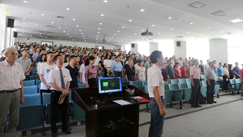 7月1日,中科院高能所组织举办“不忘初心、牢记使命”主题教育暨纪念建党98周年党员大会。高能所党委副书记、副所长罗小安主持大会,全所400多名党员参会,东莞分部设分会场。