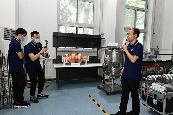 按照参观行程,云直播依次在超导厅、速调管、超导腔、精密磁测、硅探测器等实验室,向线上观众展示了高温超导带材临界电流测试和超导磁悬浮小实验,以及包括高能所自主研发的第一支国产P波段速调管、几种高性能超导腔、多种精密磁铁、高性能硅探测器等精密、高端、领先的实验设备。