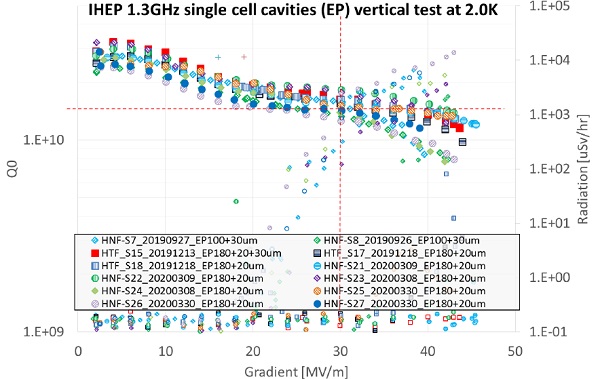 通过评审,专家组认为高能锐新公司已经掌握了包括加工成型、电子束焊接、电化学抛光、缺陷诊断等高性能1.3GHz单cell超导腔的关键技术,形成了一整套实用、可靠的工艺流程。公司采用该研制工艺制成的12支1.3 GHz单cell超导腔取得了梯度超过40MV/m、最高45.6MV/m、平均43MV/m的高加速梯度值,并且在30MV/m梯度下的平均Q0超过1.5e10,接近理论极限。