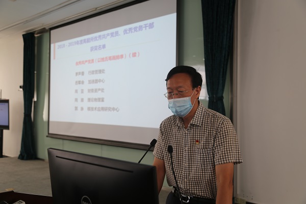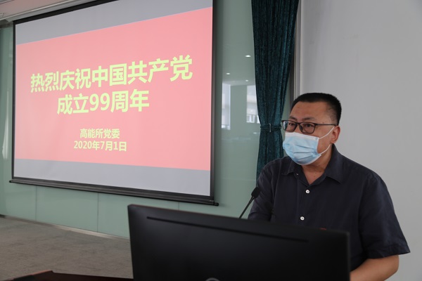 魏龙作建党99周年七一讲话。他说,今年是中国共产党建党99周年,他代表所党委向全体党员致以节日的问候。魏龙提到:一年来,所党委以习近平新时代中国特色社会主义思想为指引,贯彻落实党的十九大精神,树牢“四个意识”,坚定“四个自信”,坚决做到“两个维护”;面对新形势、新要求,所党委团结带领全所党员同志为高能所的科研工作发展奠定了坚实的政治基础;2020年是决胜全面建成小康社会之年,注定是不平凡的一年;此刻,我们纪念党的生日,要深切缅怀过去,牢记科研工作者的时代使命,乘风破浪,砥砺前行,做不畏艰险的追梦人。