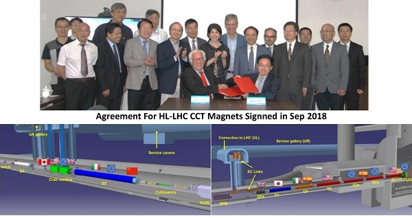 1. )20189月,中国团队与CERN签订HL-LHC CCT磁体相关合作协议; 下)HL-LHC项目中不同国家承担的超导磁体研制任务分布。