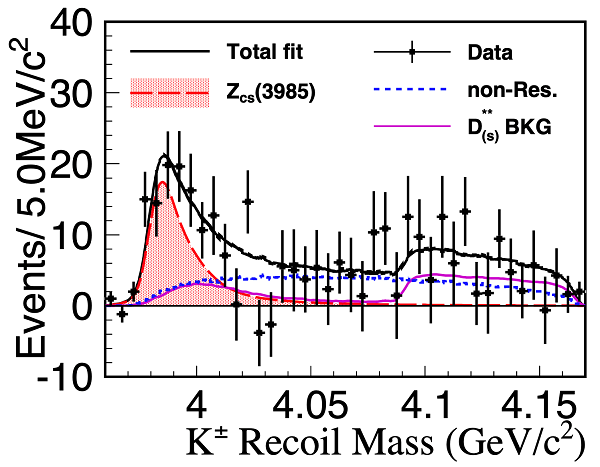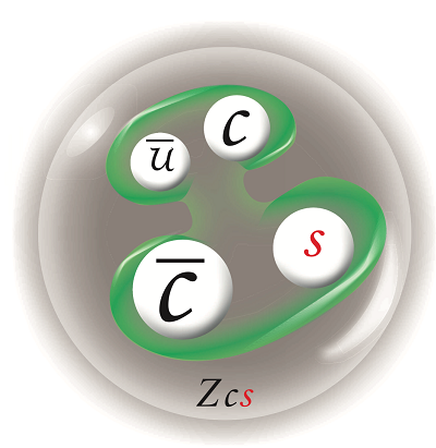 四个夸克,被认为是早先预言存在的含有奇异夸克的隐粲四夸克态Zcs的首个候选者。