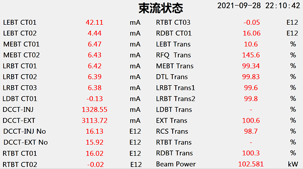 9月10日直线加速器按计划开机,9月15日同步加速器开机。加速器进入机器研究阶段,调束人员夜以继日进行束流参数恢复和调试工作,截至目前,已恢复100kW供束模式,正在进行更高功率的调试工作。